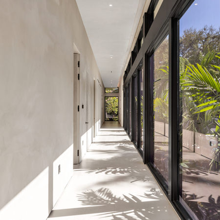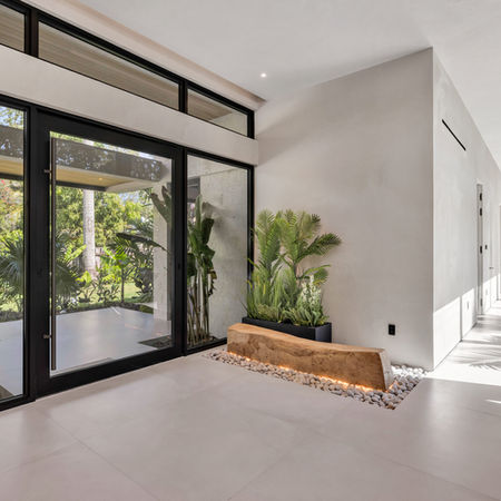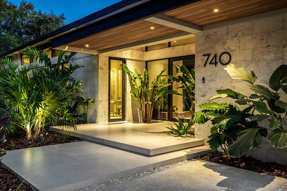Indoor-Outdoor Continuity: Large glazed openings and transitional spaces blur the boundary between interior and exterior, inviting natural light and landscape into the daily experience. Courtyards, terraces, and shaded overhangs support Florida’s climate while enhancing spatial fluidity.