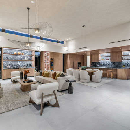 Functional Zoning: With five bedrooms, a dedicated office, and 7.5 baths, the layout is thoughtfully zoned to support privacy, productivity, and communal gathering. Circulation is likely intuitive, with open-plan living areas anchored by focal elements such as an open kitchen dining living area and centralized open pool courtyard that connects to all the spaces within the house.